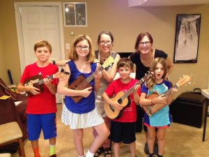 Wow! Loved working with Karen Giacopuzzi and campers to create homemade ukuleles from cigar boxes. My role was to teach campers how to play and write their own songs. We had a blast.