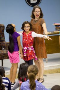 Mary shares the story of how she turned a personal experience (being teased) from her own childhood into a picture book and a musical. She reads the book and then involves the audience in a fun improvisation.